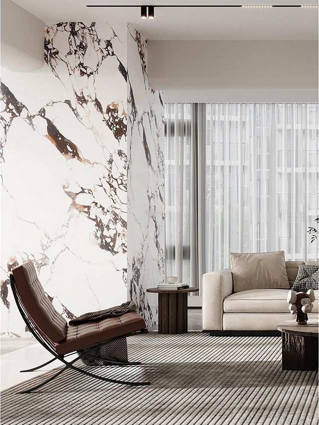 桃木茶几+大理石纹背景墙,冷调高级感瞬间拉满~