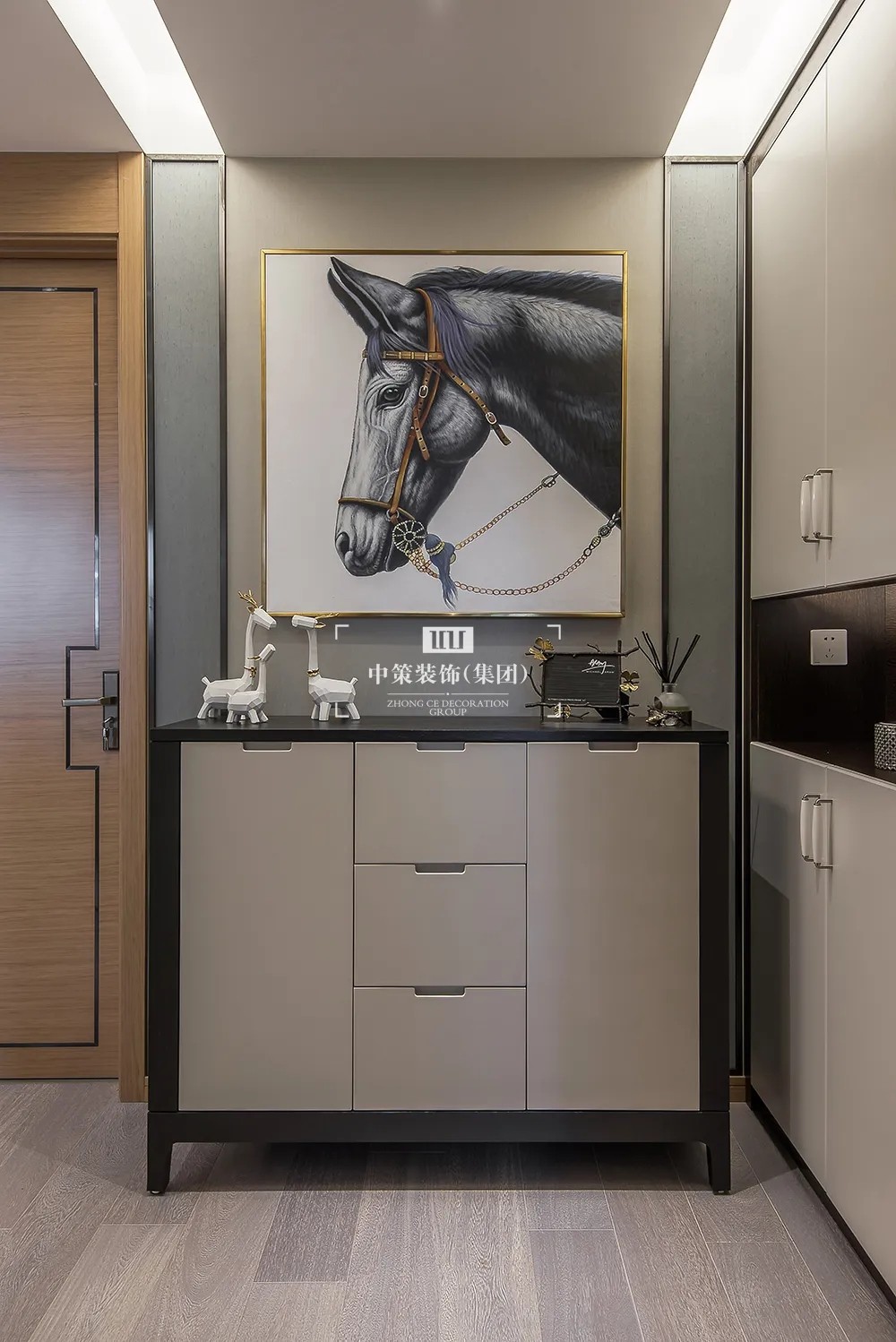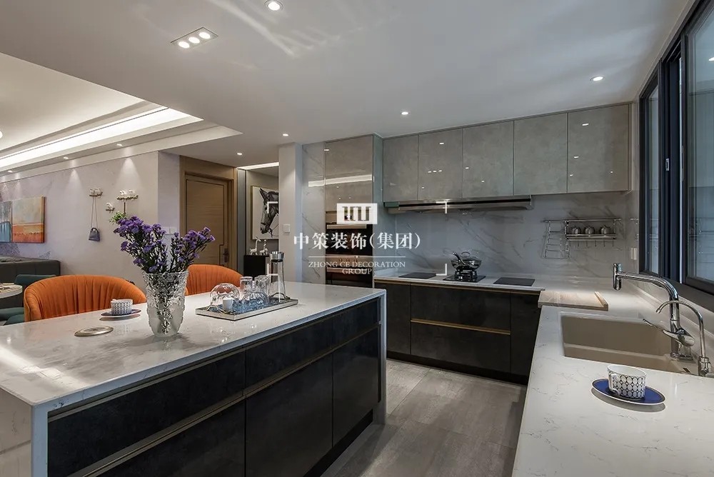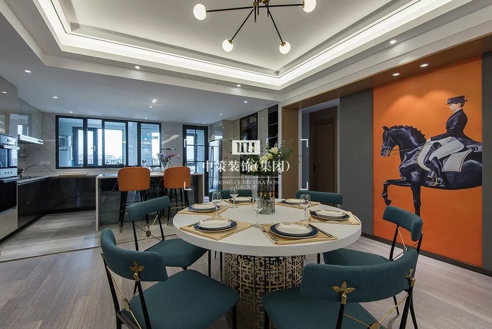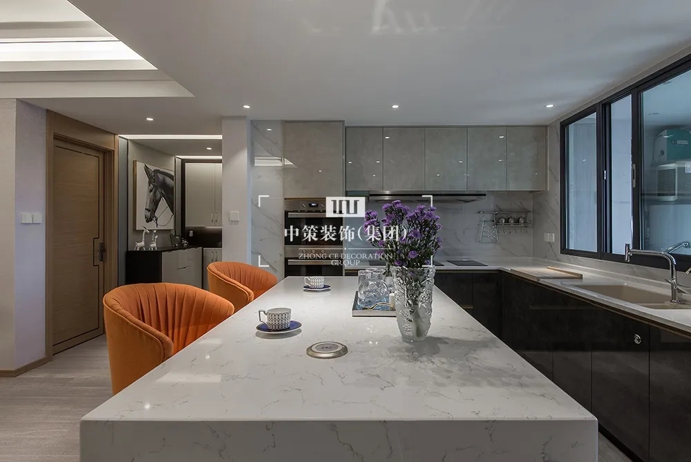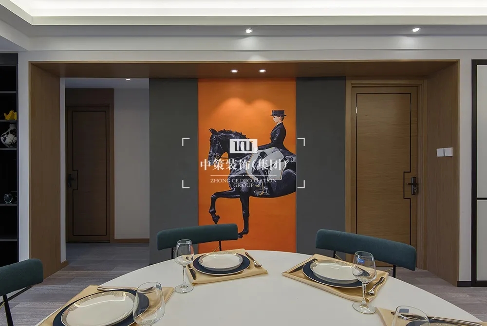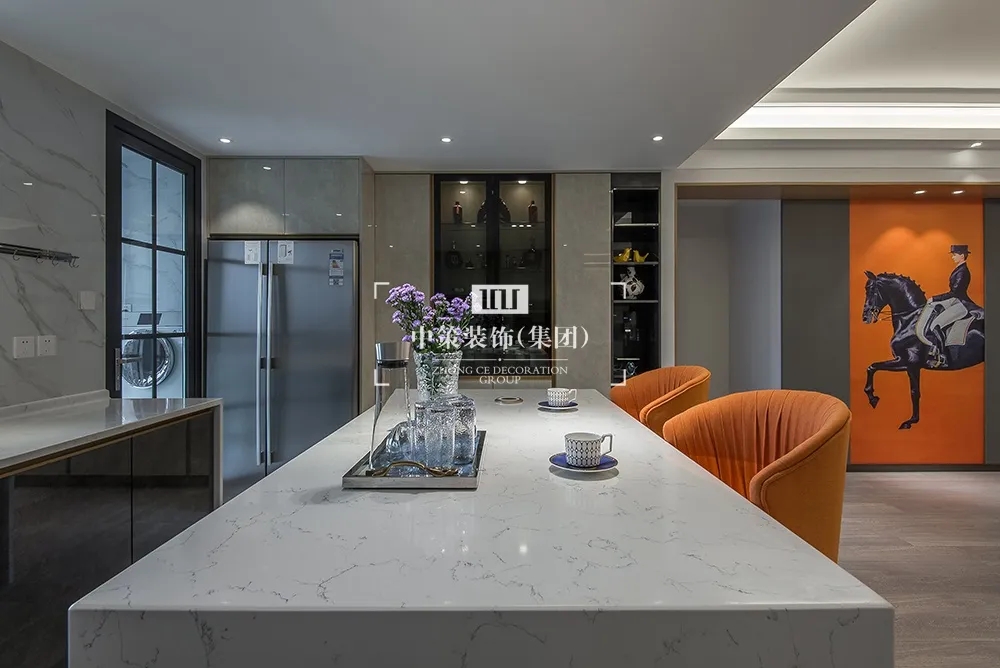 本案以马为主轴,中策装饰设计师在追求空间美感的同时也具备空间的扩张性,原本封闭的厨房和单独的储物间,通过空间的重新定义。
