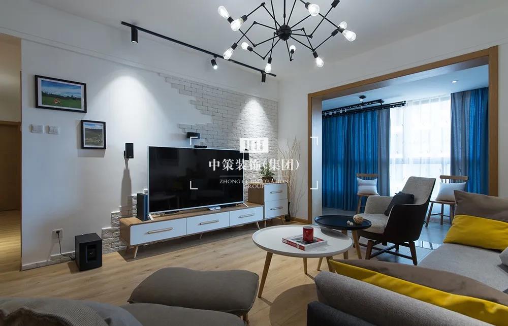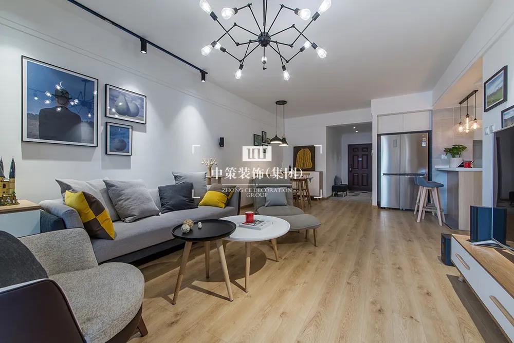 中策装饰设计的风格为现代北欧,舒适的家具、时尚的配饰,加上自然的风格和温暖的灰色调,营造出宁静舒适的居家氛围。