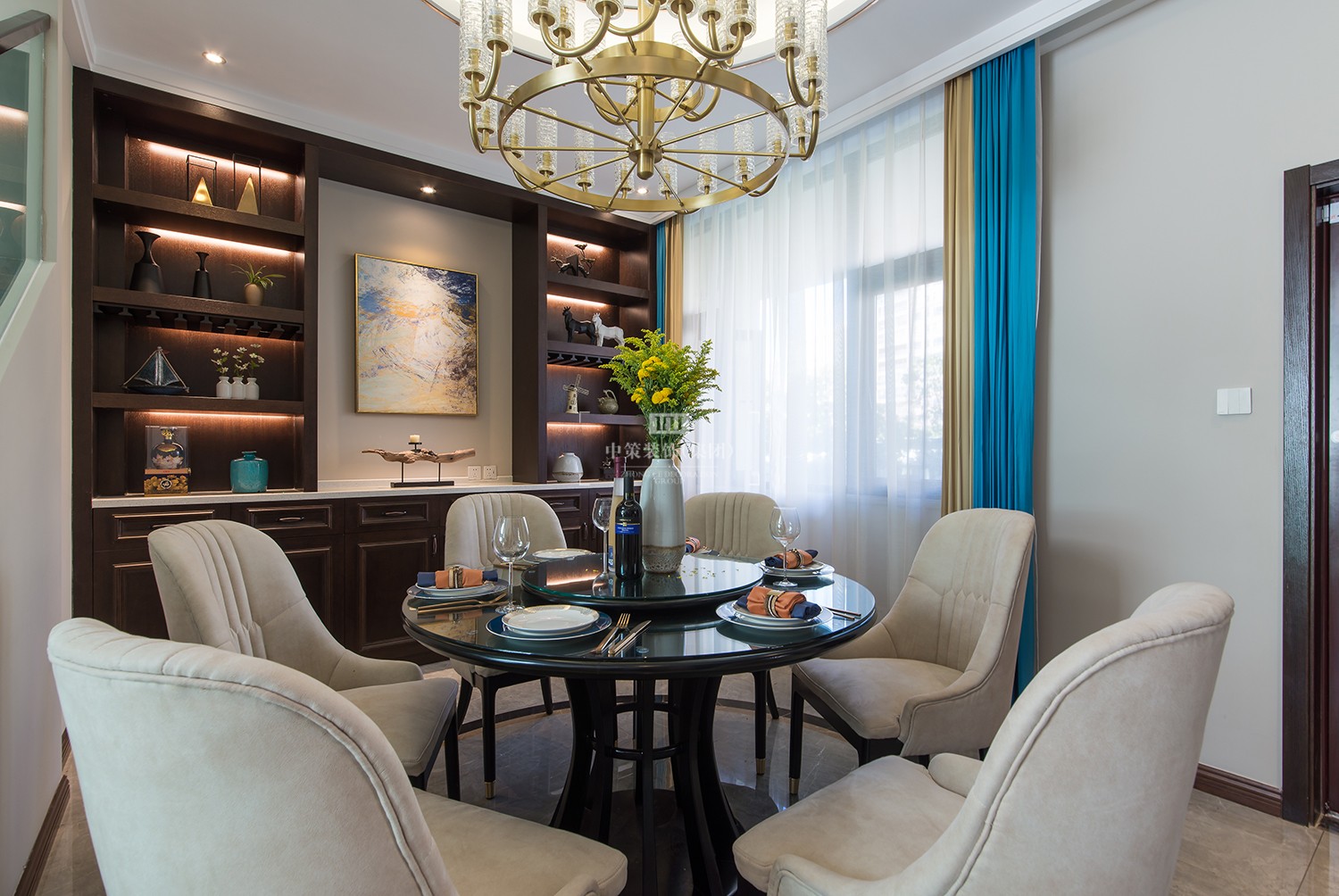 中式元素与现代风的巧妙碰撞,为别墅装修家居注入了一股时尚高雅的气息。