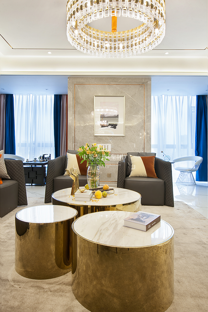 在家具配饰上,搭配了金属色的吊灯、茶几、摆件,在大气的格调之余,演绎一种“低调的奢华”!
