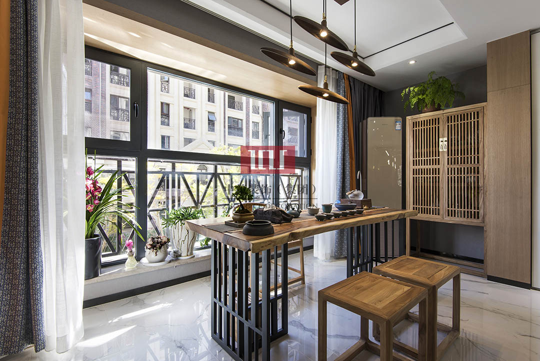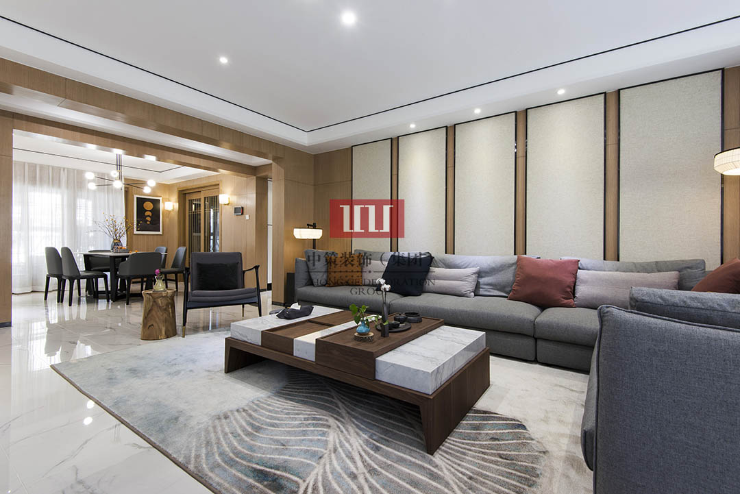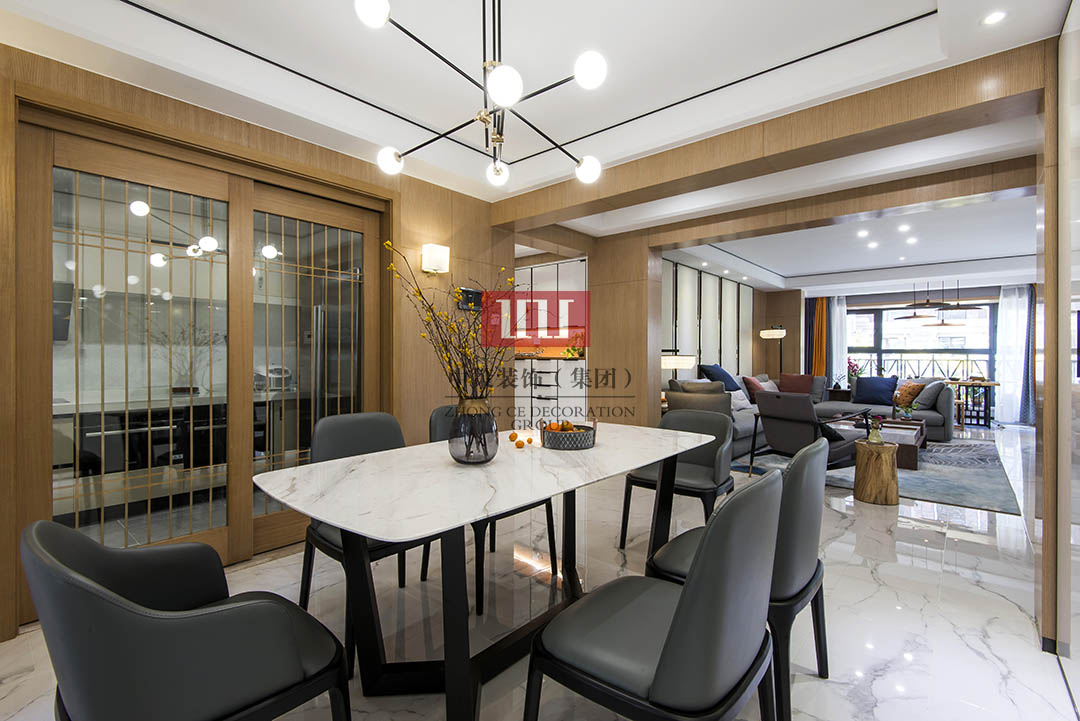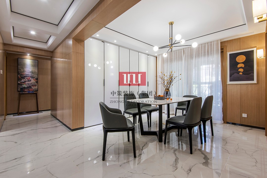 贵阳装修:现代中式平层装修180㎡中式,留一片白去想象