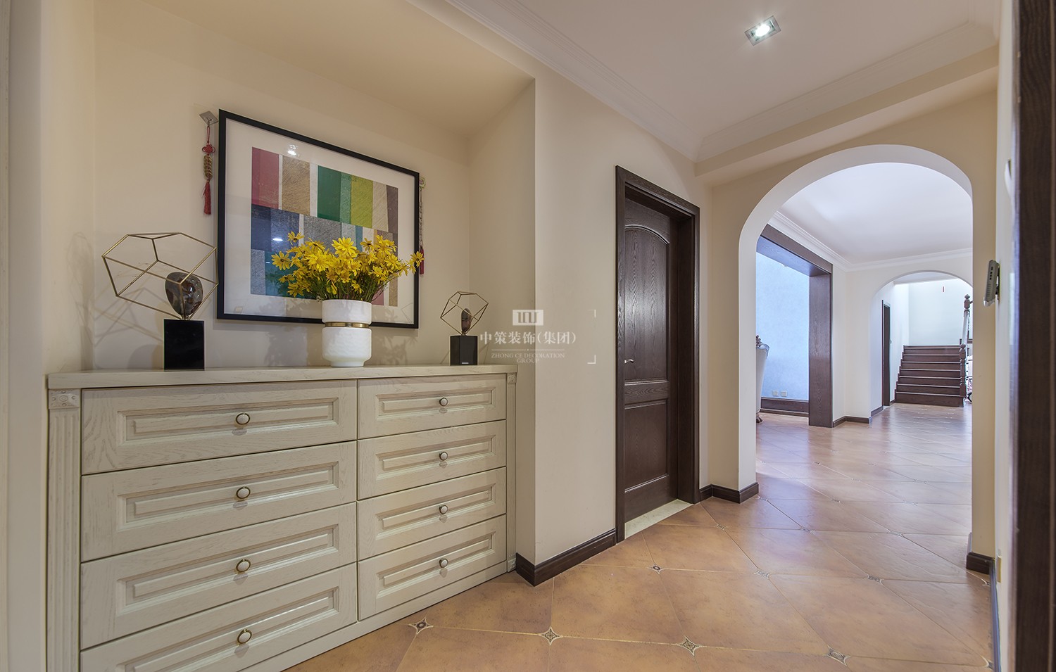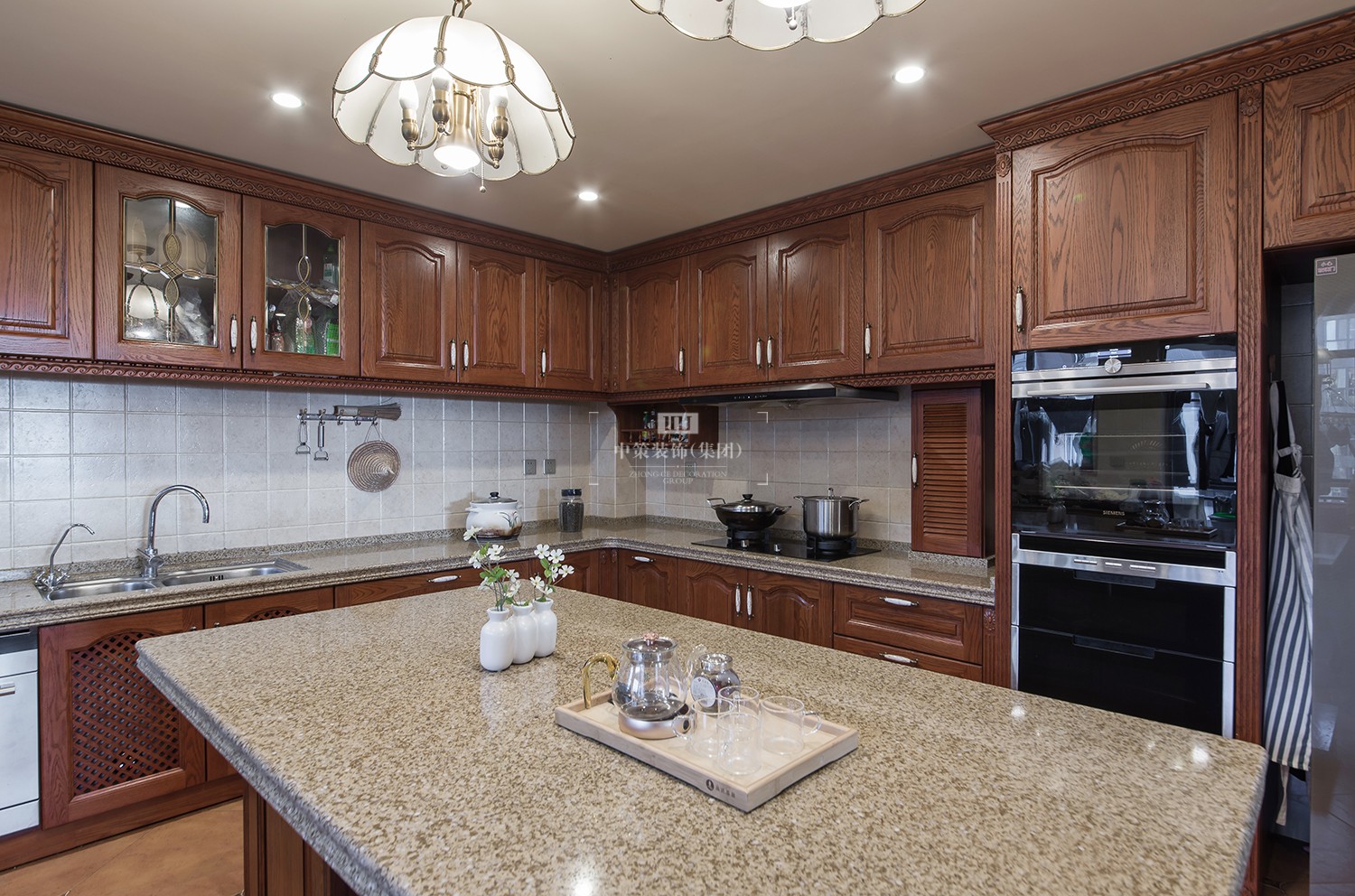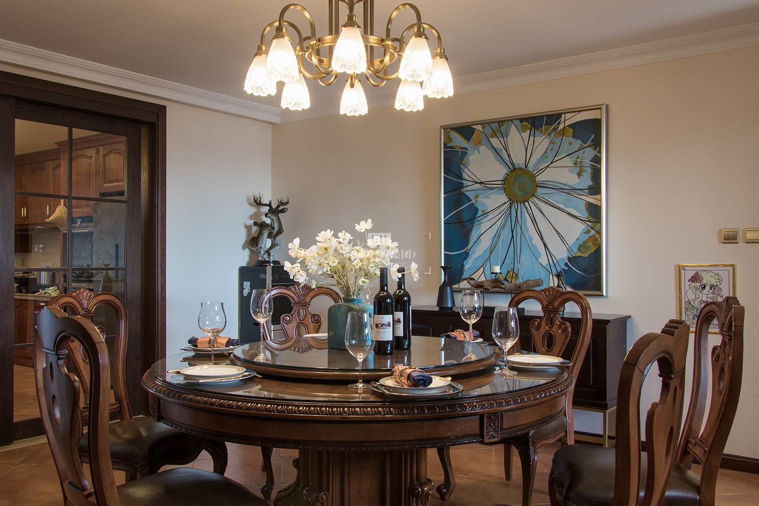 本案定位为美式风格,迷人之处在于家具造型、纹路、雕饰和色调细腻高贵,整个空间流淌着历史的痕迹以及艺术沉淀的芬芳。