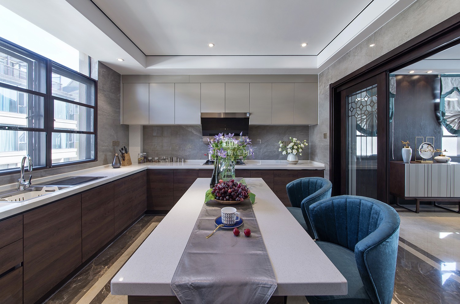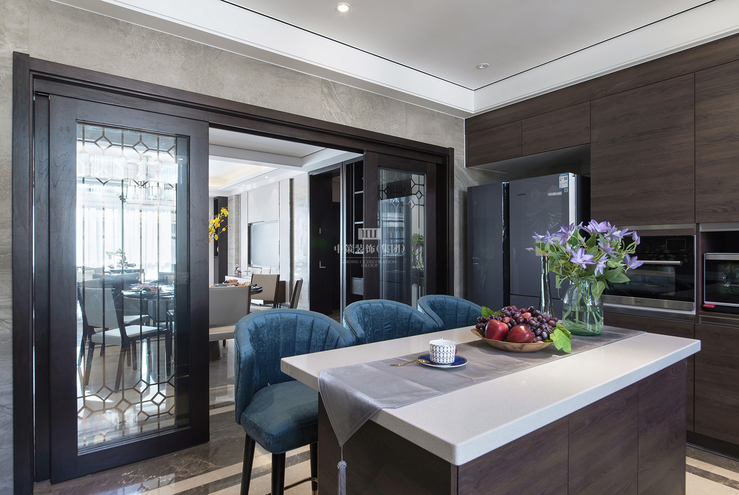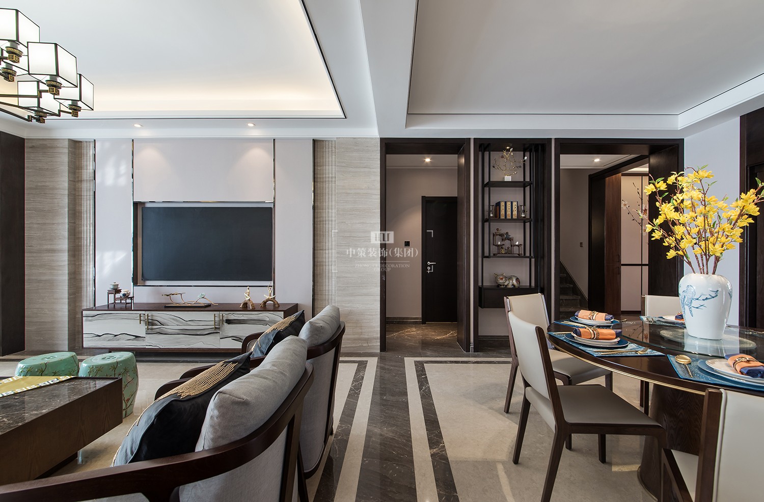 本案业主提倡空间简洁明了,同时略带一丝韵味。所以在设计风格上,打破了传统中式风格,采用了线条感清晰的家具,除了保留传统中式风格的含蓄秀美和古朴韵味外,将丰富的经典中式与现代都市风尚进行融合。 (中策装饰)