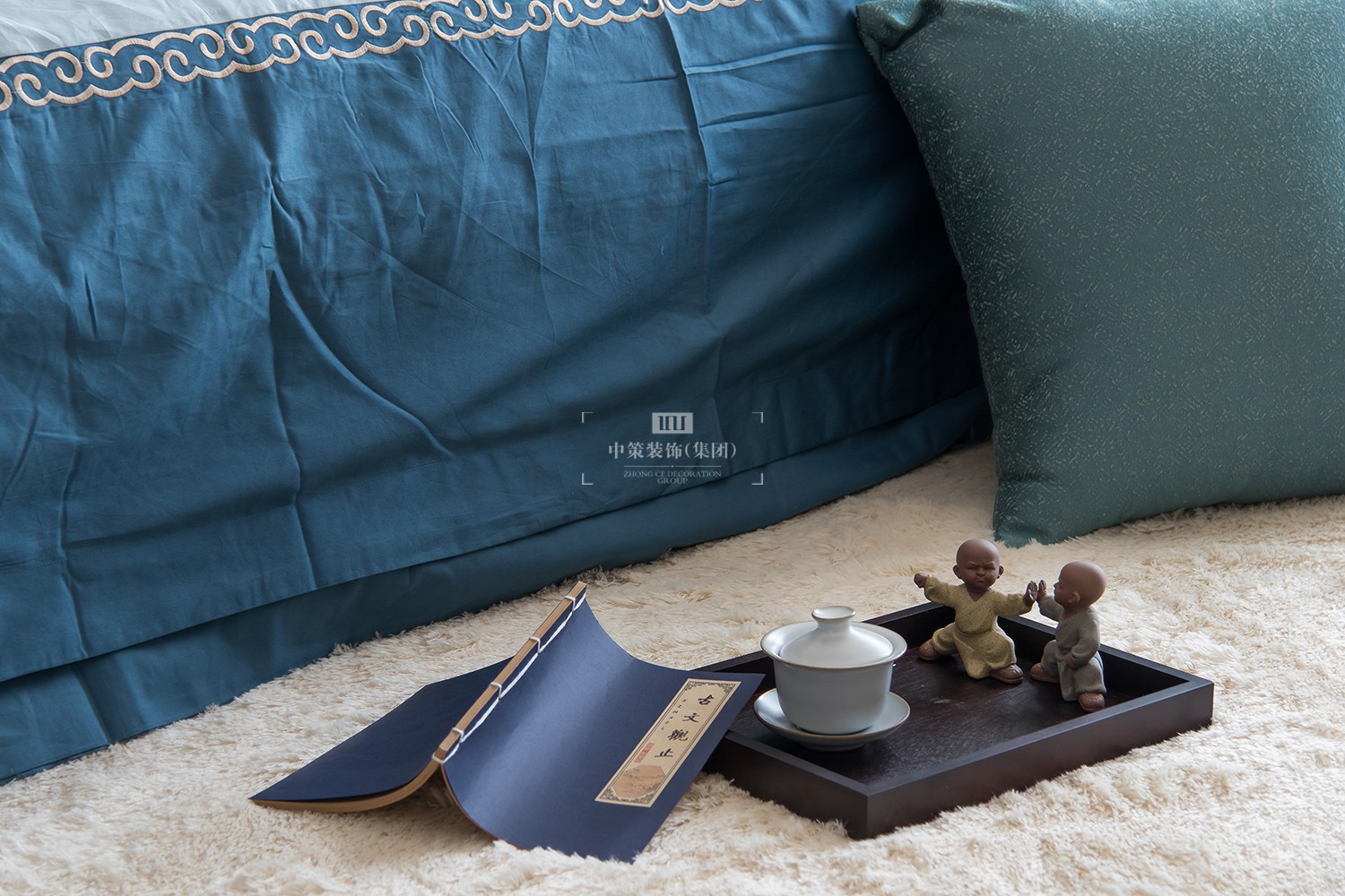 在后期软装饰品的搭配上,选择了一些具有现代金属感的装饰品,和一些亮色的布艺点缀,让整个空间更加生动活泼。(中策装饰实景案例图)