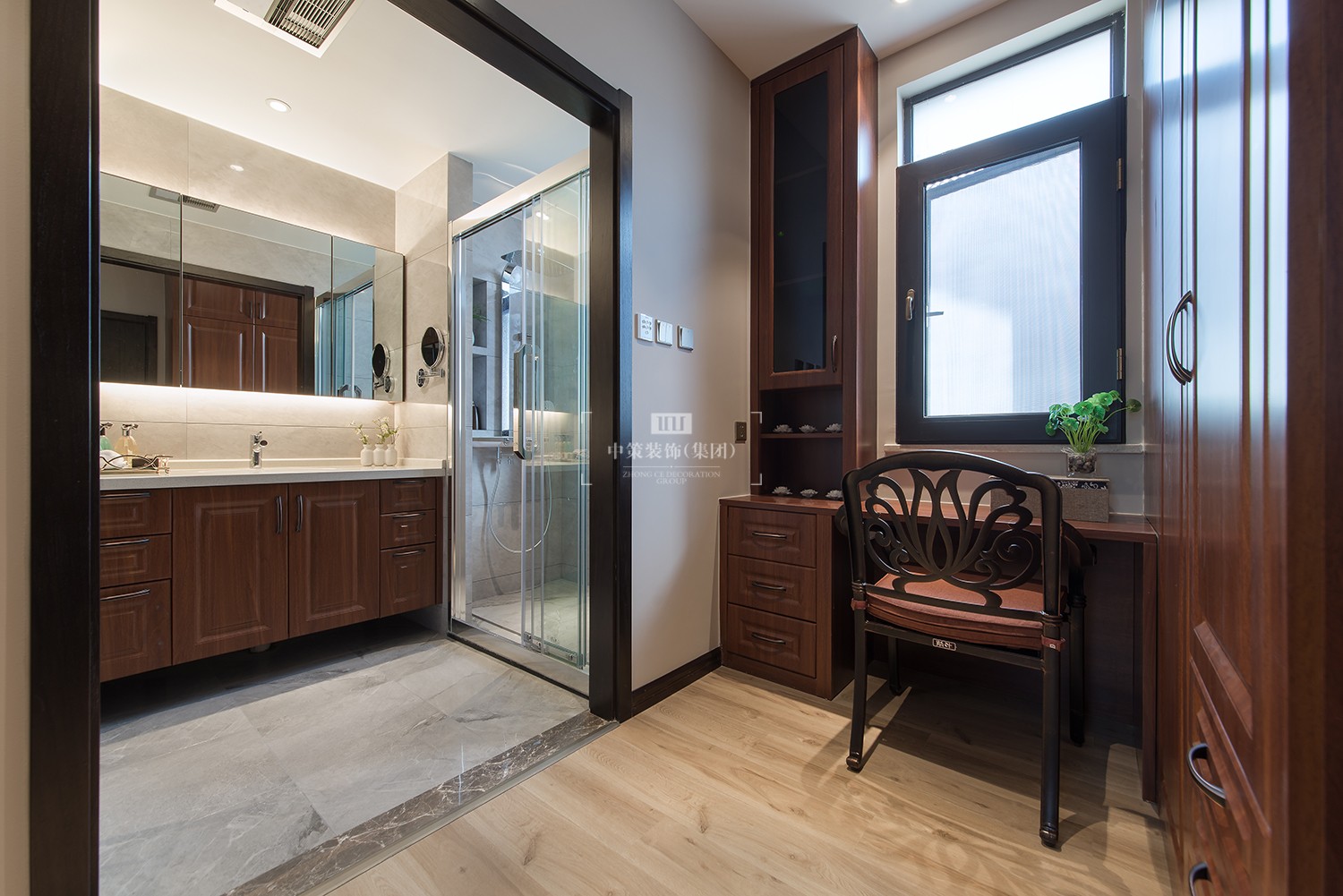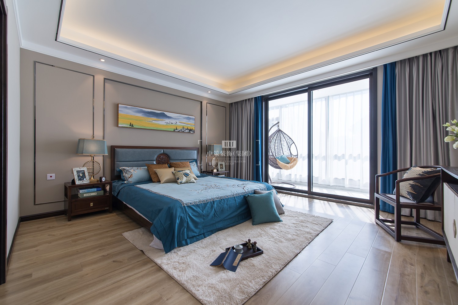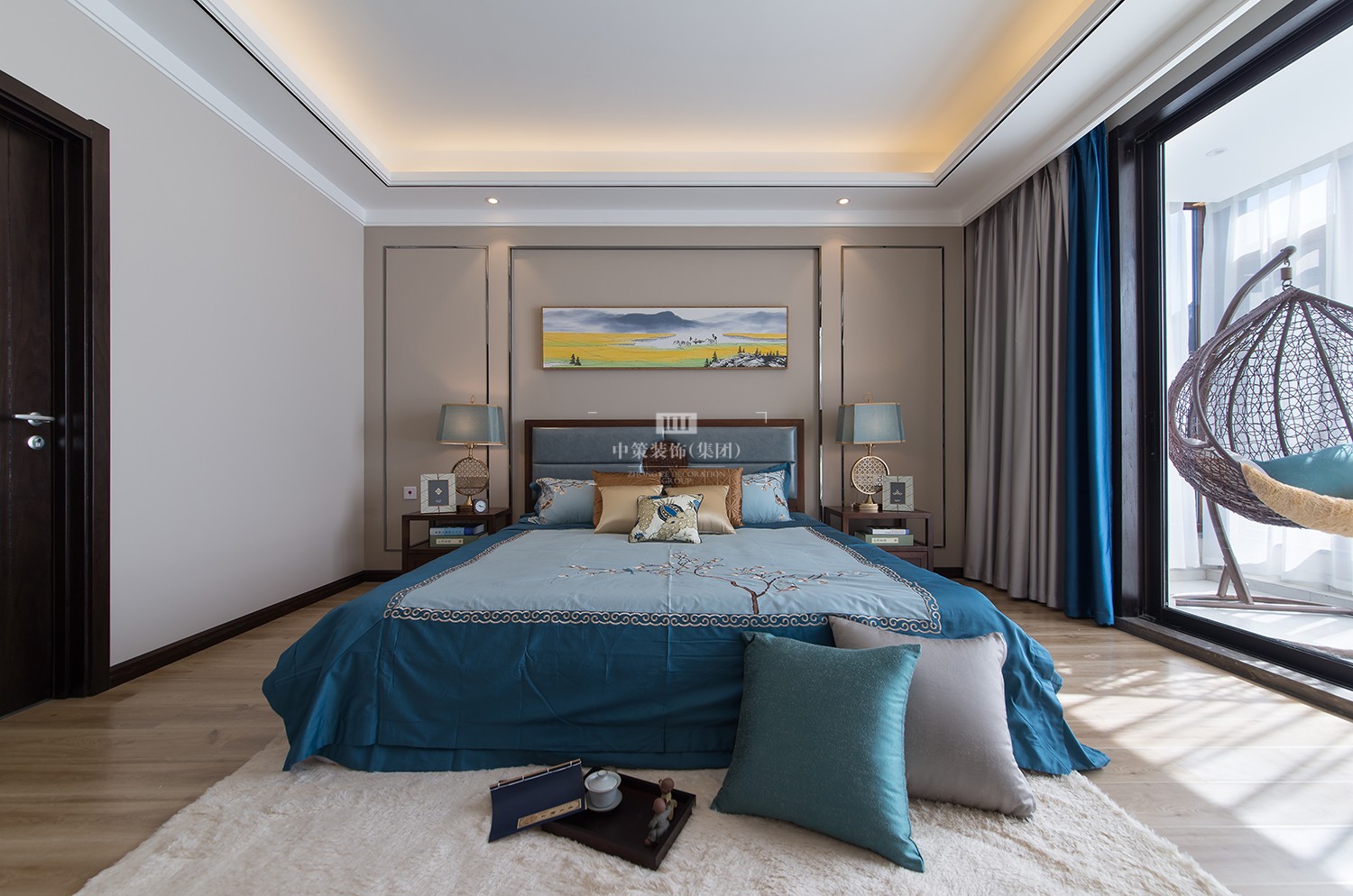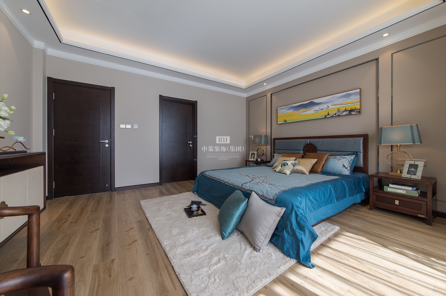 柔光搭配深咖,古韵搭配格调,主卧气质华贵大气,在这里,现代与古典相撞,别生另一番余味。晨间走到阳台上,感受清爽,开启一天的惬意精致。(中策装饰)