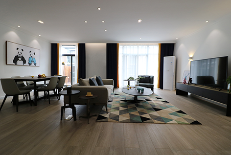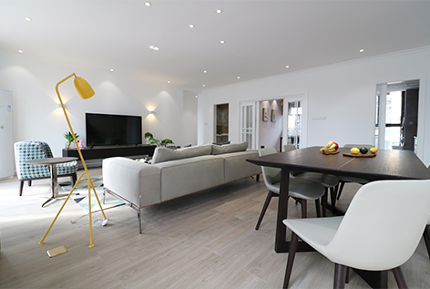 空间摆放可轻易移动的茶几和边桌,让屋主可以自由组合搭配,变化出多种使用弹性。