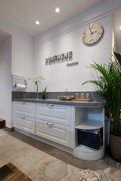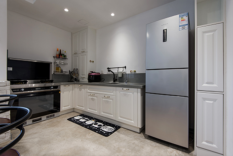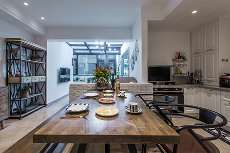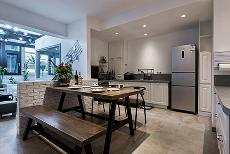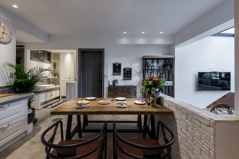 开放式厨房的设计及开放空间的白墙设计都符合业主追求的生活方式。