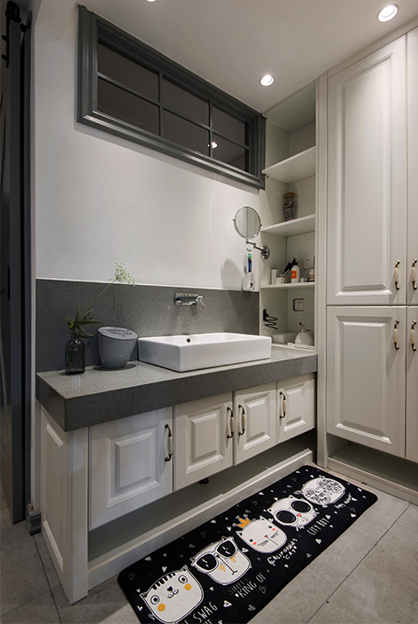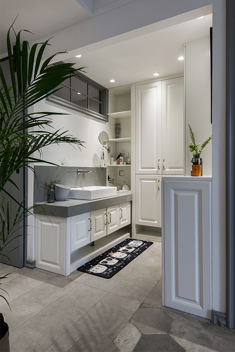 整个空间化零为整,将卫生间干湿分离,鞋帽区设计将利用率最大化,增加储物空间。