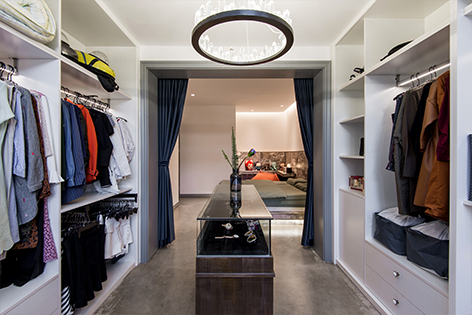 主卧室超大衣帽间的设计满足所有女性的收纳欲望。