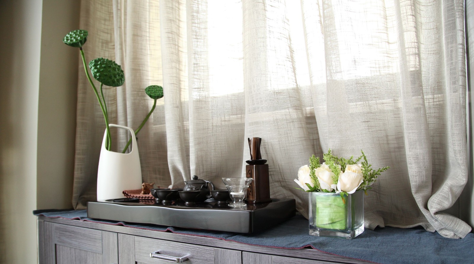若说意境,与其说花开花落、云卷云舒,不如说那些精心配置在窗前、桌边的配饰。本案的特点在于配饰点缀在偌大的空间中,沟通空间的前景与背景,烘托出前景如画,背景如诗,寓情于景,情景交融的意境。