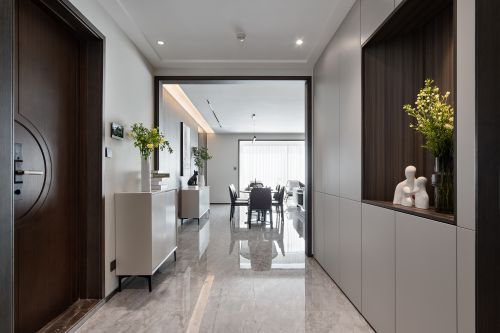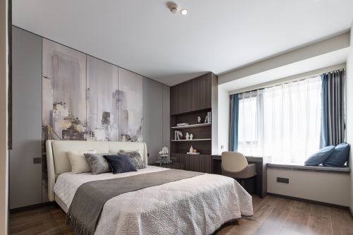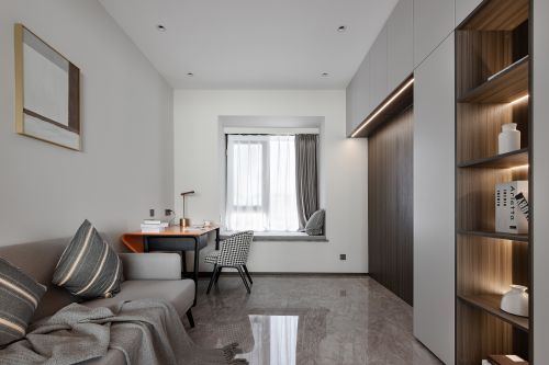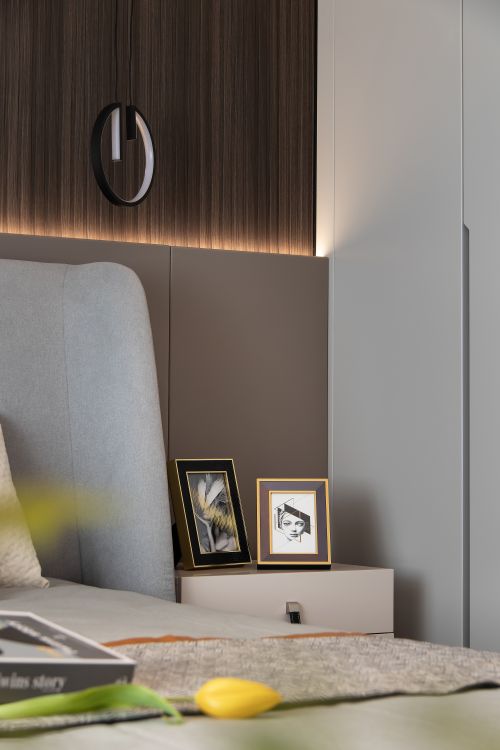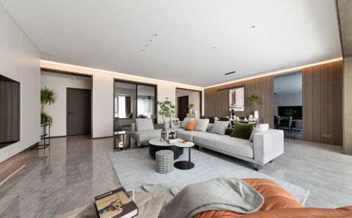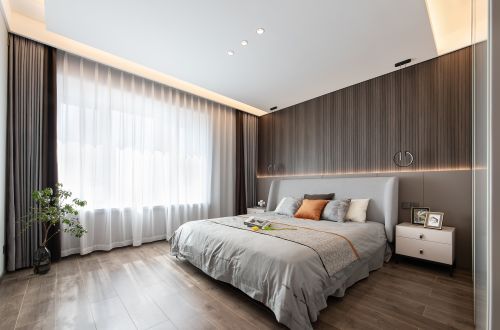 本案位于融创文旅城,是一所地理位置优越环境优美的居所。 设计师在细致了解屋主喜好及预算之后,通过对房屋结构分析,以及选材用料的反复推敲甄的,将该项目顺利落地。在整个空间内,设计师选用了大量的木饰面及墙布材质装点墙面,自然的木质纹路及柔软的墙面触感, 带给人舒适放松的感受。