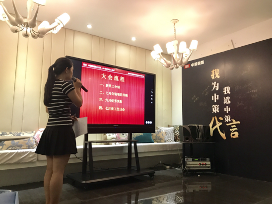 07/056月26日,中策装饰6月全员大会如期而至,本次会议主要从以下几个环节进行:新员工介绍、关于5S卫生检查、5月团队活动回顾、5月优秀表彰、中策装饰6月员工生日会。主持人:康鑫。