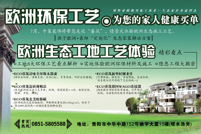 08/06贵阳房龙百姓购房网讯 (记者 骆玉辉)近月,随着楼市的升温,装修市场也日趋火爆,各大装修公司也大打品牌战略,通过举办各种活动向消费者“亮剑”。8月1日,贵阳中策装饰公司推出的欧洲标准工艺、环保材料便“亮剑”金狮小区。