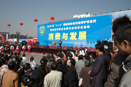 03/182009年3月14日,由贵州省消费者协会主办的“3.15国际消费者权益保护纪念日宣传咨询暨企业展示启动仪式”在贵阳市人民广场拉开帷幕,活动的主题是“消费与发展”。