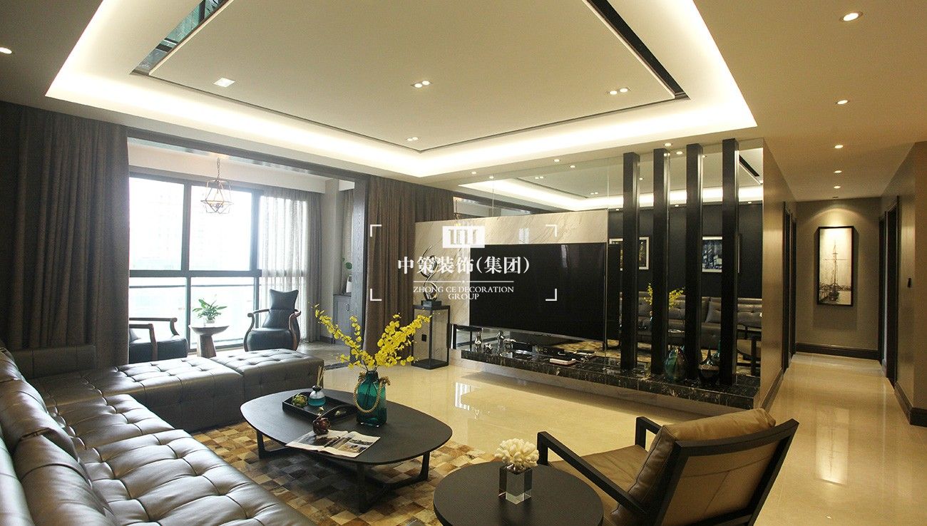 本案的客厅面积较大,配之以黑色的真皮沙发,纯粹的黑色背景墙,扑面而来的稳重感,在于设计师在空间上的把控,更在于客户在时间上的沉淀。主卧延续了客厅的稳重感,没有雕梁画柱,不刻意雕琢,一切仿若自然而生,造化与景。